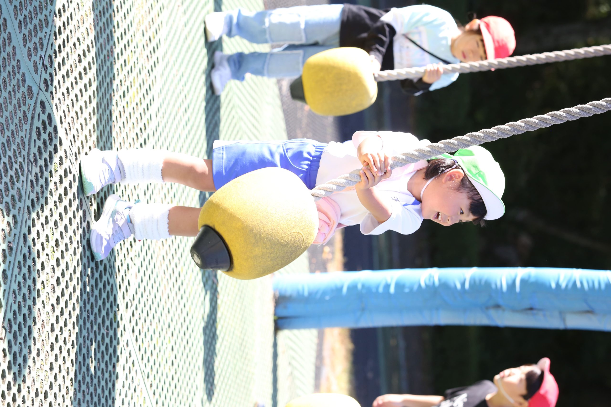前日の雨で遊具が濡れていても、子ども達は気にせず遊んでいました。